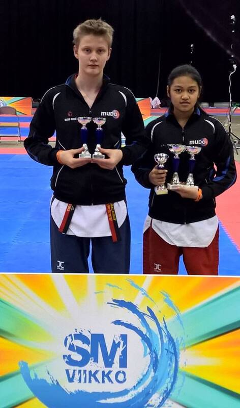 SM kilpailuista 14.2. Lohjalaisen Mudo ry kilpailijat Naam Suomalainen saavutti 2 kultaa ja 1 hopean ja veljensä Keni saavutti 2 hopeaa. Ottelun ja liikesarjojen SM-kisat käytiin kansallisen SM-viikon yhteydessä 12.-14.2.2016 Tampereen Pirkka-hallissa. Ottelun osalta kilpailut ovat kaksipäiväiset 13.-14.2.2016. Finaalit oteltiin sunnuntaina. Liikesarjakilpailut olivat kokonaisuudessaan sunnuntaina. MUDO ry:n kilpailijat menestyivät hyvin 2 kultaa ja 3 hopeaa sekä yksi 5. sija. Tyttöjen 12-14-vuotiaiden sarjassa Naam Suomalainen uusi Suomen mestaruutensa. Hän oli jo vuonna 2015 saman sarjan mestari ja vuonna 2016 tuo on nyt uusittu. Killpailuissa on oli ennakkosuosikki ja hän näytti kaikille hienosti varmalla suorituksellaan ettei kenelläkään ole syytä huoleen. Suorituskunto oli kohdillaan. Pisteissä Naam oli ylivoimainen omassa sarjassaan. Nyt on alkuvuoden pääkilpailut PM ja SM -kisat käyty ja keskitytään uuden peruskuntokauden kautta syksyn kilpailuihin. Ensin pidetään pari viikkoa vähän rauhallisempaa tahtia. Sarjan kolme parasta paria ja pisteet: