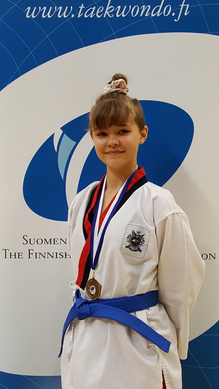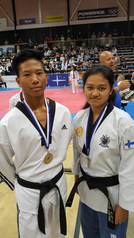 Naam Suomalainen 16v, osallistui kolmeen alle 18-vuotiaiden kilpailusarjaan. Urakka alkoi henkilökohtaisella sarjalla, jossa hän otti ylivoimaisen pistevoiton kanssakilpailijoista. "Tämä on hyvä suoritus tässä vaiheessa vuotta, koska nyt olen harjoittelemassa marraskuussa pidettäviin MM-kilpailuihin ja paras mahdollinen liikkuvuus ei ole ihan kohdillaan tässä kohtaan kautta. Kilpailuun olen kohtuu tyytyväinen, vaikka tiedän että parempaankin pystyn. " Sanoo Naam hymyillen. Parisarjassa Mico Knutssonin kanssa he ottivat myös varmalla suorituksellaan sarjavoiton. Naam on valittu MM-kilpailuihin edustamaan Suomea myös parisarjassa Micon kanssa. Naam urakka päättyi iltapäivän puolella alle 18-vuotiaiden tyttöjen ryhmäsarjaan. Ryhmä Naam Suomalainen, Tara Tuokko ja Jessica Iivarinen ottivat hopeaa. He jäivät vain 0,01 pistettä voittajaryhmän taakse. Naam valittiin Juhannusviikolla MM-kilpailuun lähtevään joukkueeseen edustamaan Suomea. MM-kilpailut ovat marraskuussa Taipeissa, eli vielä on 5 kuukautta aikaa viimeistellä niitä elämänsä parhaita suorituksia.”Tuo vaatii paljon tekemistä monella osa-alueella. Liikkuvuus, voimantuotto, tasapaino, kokonaisvaltainen kehon hallinta ja vahva mieli joka vaatii myös hyviä hermoja stressitilanteessa. Lohjan Liikuntakeskus on myöntänyt Naamille harjoittelua varten stipendin, joka antaa hyvän mahdollisuuden harjoitella Tennarin liikuntatiloissa. Naam on syksyllä 9-luokalla peruskoulussa ja se antaa hyvää vastapainoa harjoittelulle. Koti, koulu ja harrastus ovat kaikki tärkeässä asemassa sulassa sovussa. Nyt kesällä Naam kerää MM-matkakassaansa myös metsässä poimimalla mustikoita, ja se on korvien välille myös hyvää harjoitusta.” Kertoo Vesa Suomalainen, joka on Naam henkilökohtainen valmentaja ja Mudon pääohjaaja. Elvi Ollila 13v, osallistui henkilökohtaiseen 12-14 vuotiaiden tyttöjen sarjaan saavuttaen pronssia. Elvi on harjoitellut Naam kanssa viimeisen kuukauden valmistautuen SM-kilpailuihin. Tyttöjen sarjassa oli kolme kierrosta ja ensi oli selvitettävä tie semifinaaliin. 5,80 olivat rajana semifinaaliin pääsemiseksi. Elvi menikin semifinaaliin 6 parhaan joukkoon pistein 6,03. Semifinaalikierrokselta selvisi finaaliin 5 kilpailijaa, ja sinne jatkui matka kolmanneksi parhailla pisteillä. Vesa Suomalainen 50v, osallistui myös kahteen sarjaan ja toi molemmista pronssia. ”Olen keskittynyt pääosin harrastajien tukemiseen suunnittelemalla harjoituksia ja opettamalla lajia heille. Naam valmentaminen vie myös aikaa kymmeniä tunteja viikossa, joten olen tosi tyytyväinen suorituksiin. Taekwondo on kuitenkin laji, jossa opettajan täytyy myös osata itsekin asioita tehdä. ” Sanoo Vesa hymyillen.